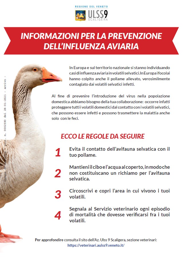 Misure di prevenzione: sul volantino allegato sono riportate le raccomandazioni dell'ASL 9 per la prevenzione della diffusione dell'influenza aviaria.