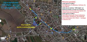 Per consentire l'incolonnamento delle auto in attesa, l'avvio della registrazione dei tempi e la partenza delle auto storiche, dalle ore 13.00 verranno chiuse al traffico Viale Libertà, Via Vescovado, Piazza Scipioni e Via Umberto (che verrà percorsa dalle auto della "1000 miglia" contromano).