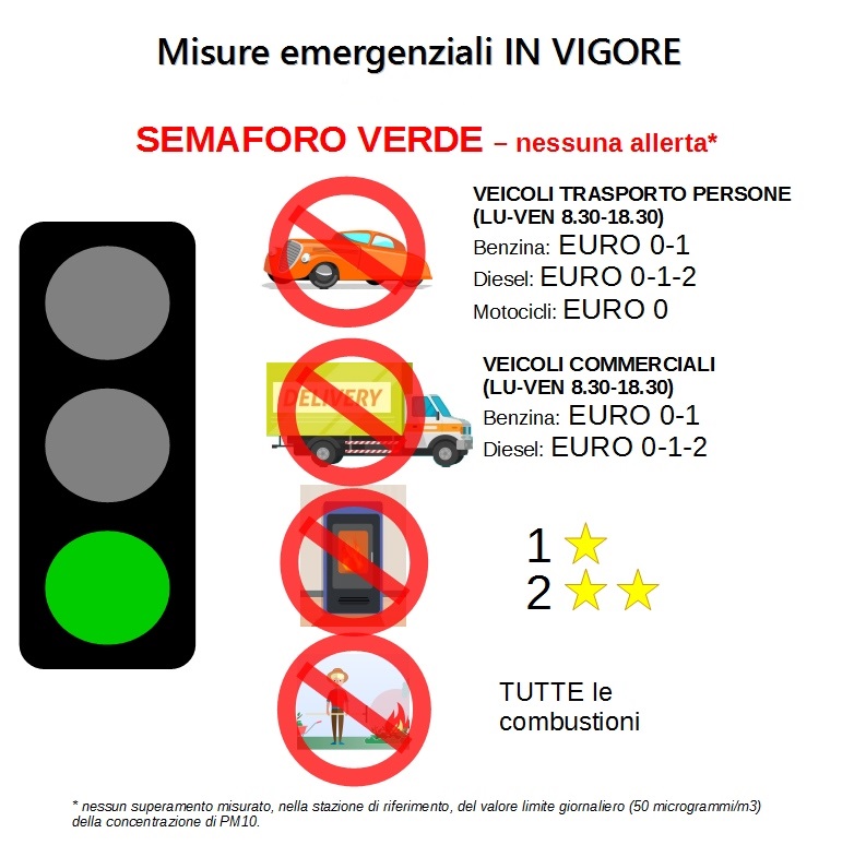 A seguito della precedenti informative sullo stato di qualità dell'aria, in cui si era comunicato un peggioramento dovuto alla concentrazione elevata di PM10, l'Osservatorio per la qualità dell'aria di ARPAV ha fatto presente che dal giorno 22.02.2024 si rientra al livello zero (semaforo verde).